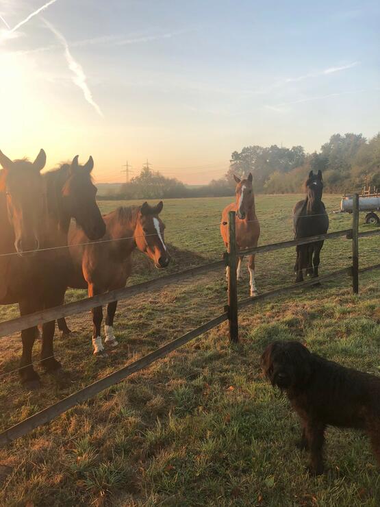 Allen Einstellern steht der Reitplatz 45x20m mit Kirchhellersand belegt und die Führanlage zur Verfügung. Ausreitgelände in eigenen Wäldern steht direkt um den Stall herum zur Verfügung.