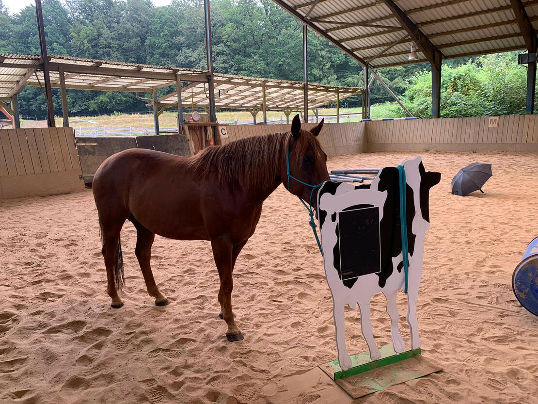Pferde und Reiter können sich in unserer 20 x 40m Reithalle fithalten und bei unserer Reitlehrerin Unterricht nehmen.