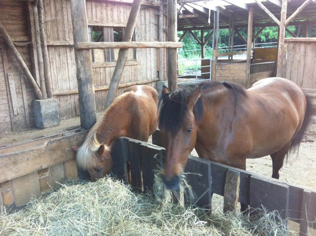 Harmonie in der Herde und zwischen den Pferdebesitzern ist für uns wichtig. Unsere Pferde leben im Laufstall mit ständigem Zugang zu Heu. Das Wasser wird über zwei geheizte Selbsttränken im Freien gereicht.
