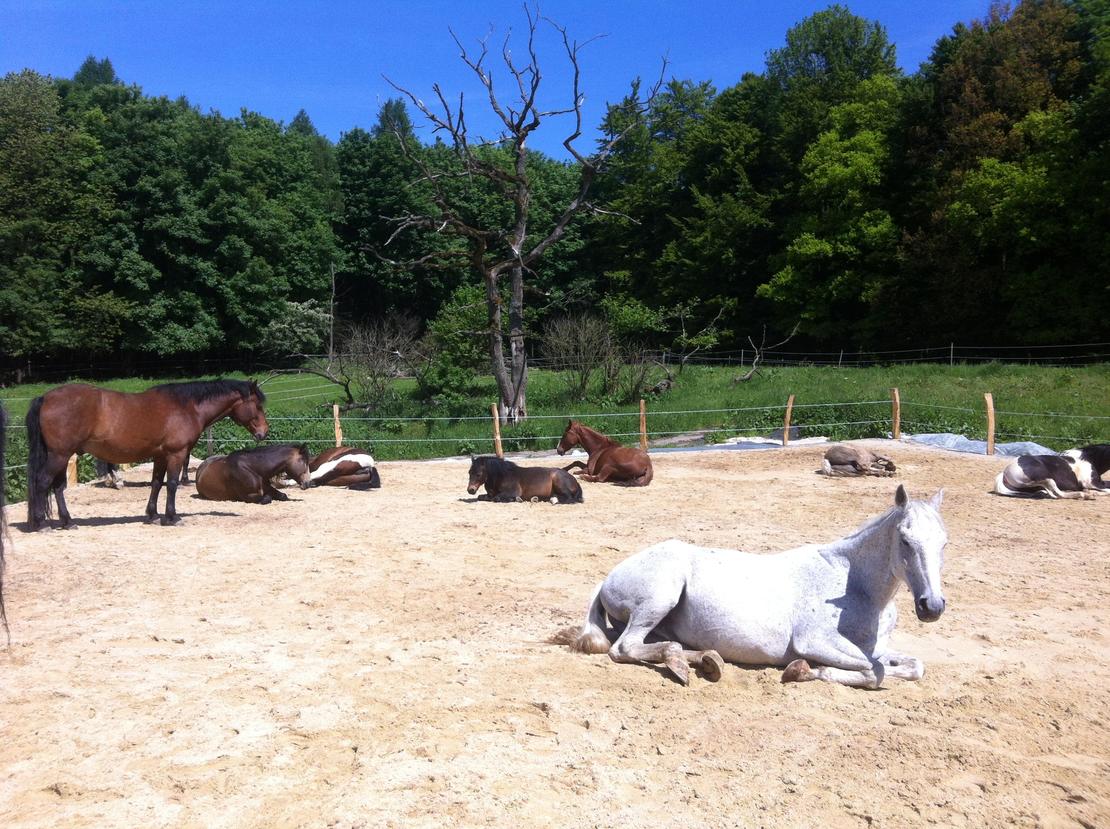 Wir betreiben zwei Laufställe für Pferdegruppen zwischen 5 und 30 Pferden. Die grössere, gemischtaltrige Gruppe umfasst Pferde und Ponies zwischen 3 Jahren und etwa 24 Jahren. Selbstverständlich gehen alle unsere Pferde barhuf.