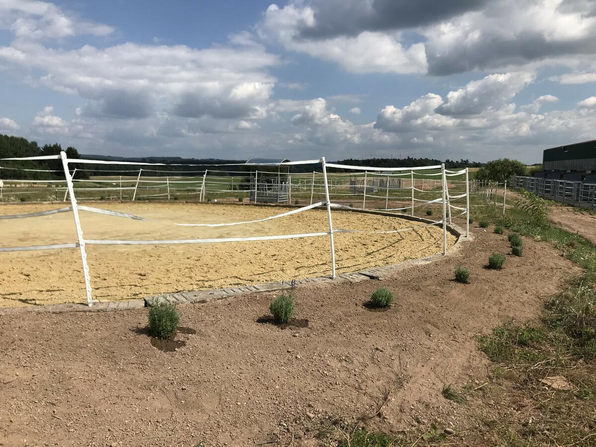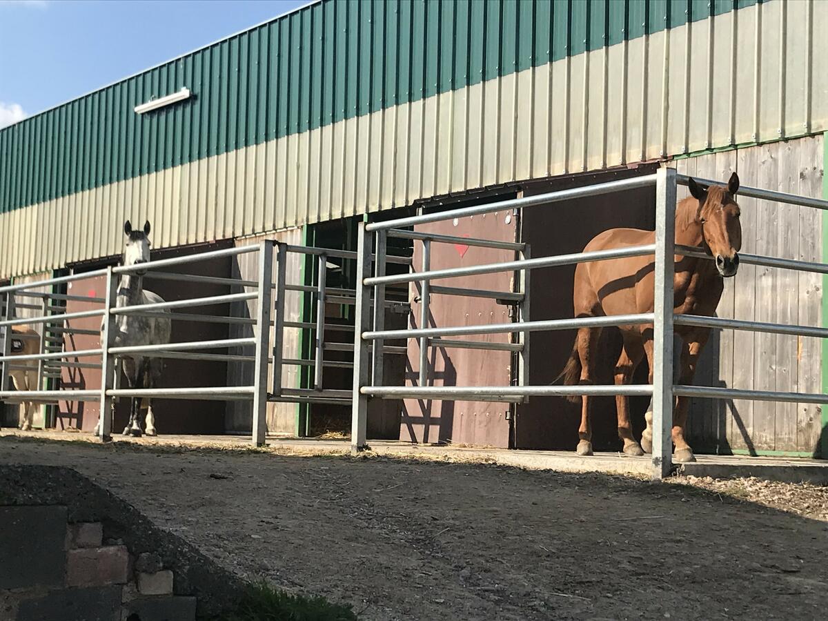 Pferdepension mit Vollpension. (Kein Reitunterricht auf Schulpferden, keine Halbpension) Helle große Boxen mit Paddock und permanent Zugang zu Heu. Boxen werden täglich gemistet, Paddocks täglich gekehrt. Kraftfutter 2 x täglich. (Hafer oder Gerste) Die Pferde kommen von Mai bis Oktober morgens in kleinen Gruppen (3-4 Pferde) auf die Koppel und werden abends wieder rein geholt (8-17 Uhr). Bei konstant zu heißen Temperaturen gehen die Pferde über Nacht auf die Koppel (19-10 Uhr). Selbsttränken auf den Koppeln. Von November bis April werden die Pferde in ihren bestehenden Gruppen jeden 2. Tag Tag auf befestigte Winterausläufe geführt (Sagustu Paddockplatten, Heuraufen mit Heu). Des Weiteren stehen Winterkoppeln zum Stundenweise freilaufen zur Verfügung (in Eigenregie der Einsteller). Putzgasse mit Einzelanbindeplätzen und Waschbox. Schmiedeplatz. Außreitgelände mit Rennbahn in Hofnähe. 60er Reithalle mit Vliesboden. Longierplatz und Außenplatz (60 x 30 m) mit Kirchhellener Sand (Stresan). Für Dressurstunden können die Trainer der Wahl gerne auf den Hof kommen. Wasserheizung für die frostigen Tage. Heu und Stroh aus eigener Herstellung, immer trocken gelagert. Reitböden und Haltungsbedingungen für Westernreiter und Islandpferde ungeeignet. WLAN vorhanden. Wenn Sie mehr über unseren Stall erfahren möchten können Sie uns gerne kontaktieren. Preise Vollpension: 370 - 390 Euro. Besichtigungen ausschließlich nach vorheriger Terminabstimmung.