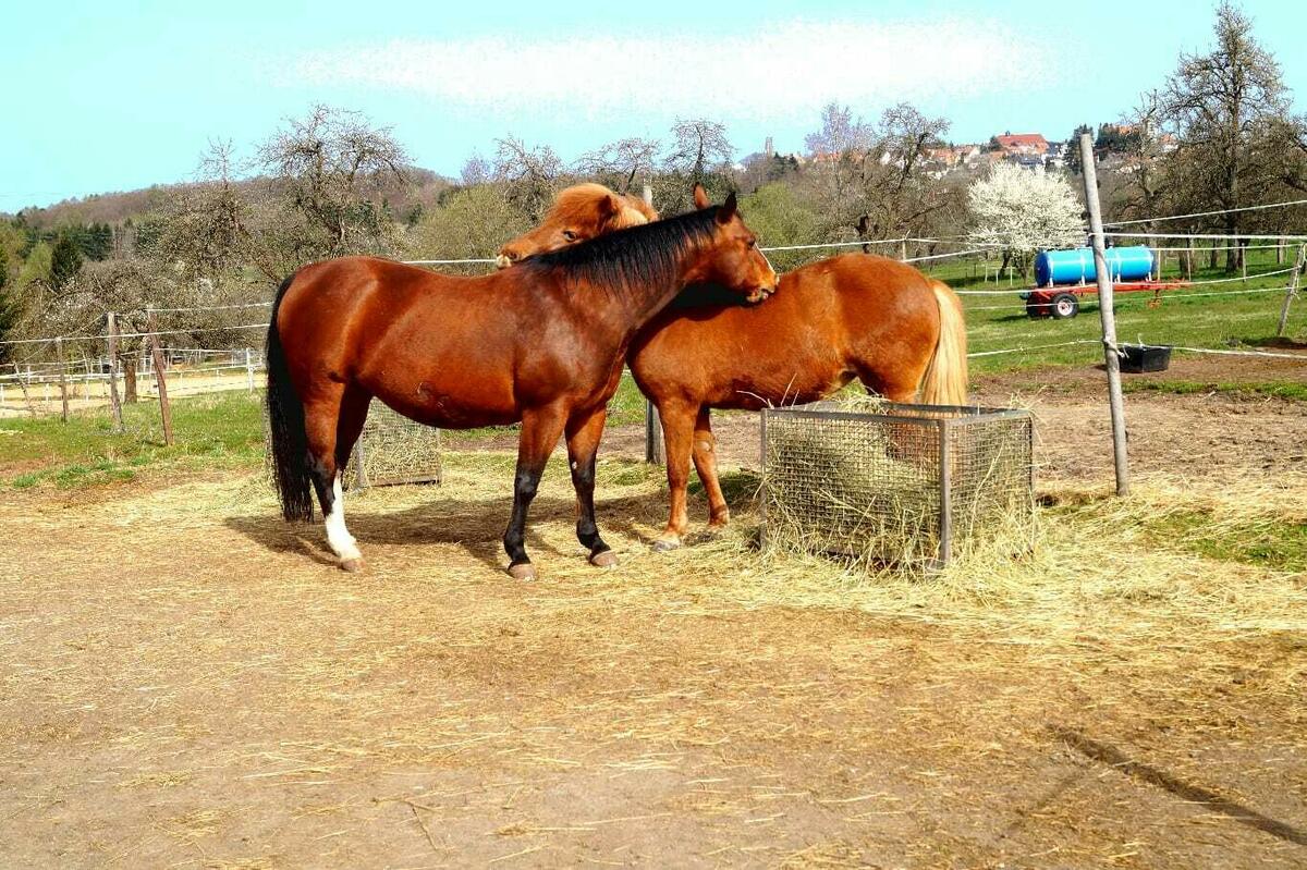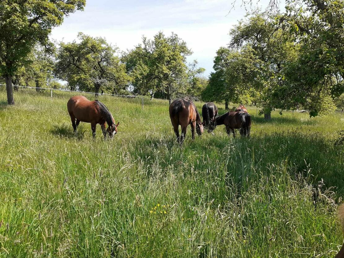 Sehr ruhige und gemütliche Anlage, mit einer netten Stallgemeinschaft. Um das Wohl ihres Pferdes wird bei uns bestens durch geschultes Fachpersonal gesorgt. Ganzjähriger Weidegang möglich!!!Sommer grosse Koppeln 24h mit Wasser , Winter Paddock befestigt mit Heuraufen Einzelkoppel oder Einzelpaddock möglich mit wahlweise Heu,Heulage,und Wasser Qualitätsfutter aus eigener Herstellung. Reithalle und Aussenplätze(Dressur, Spring, Vielseitigkeitsstrecke) stehen neben besten Ausreitmöglichkeiten zur Verfügung. Reitstunde jeder Sparte sind möglich, auch mit eigenem Trainer , so wie Bodenarbeiten , Trail , Horsemenship , auch mit Trainer so wie Lehrgänge . Bestes Ausrittgelände fern ab von Straßen .