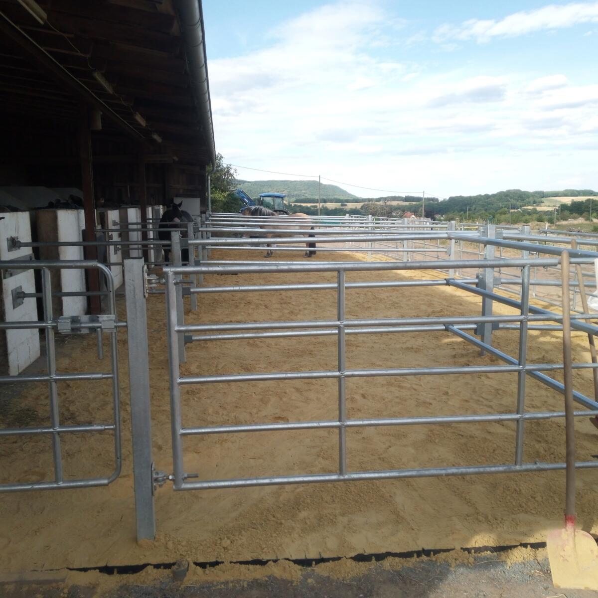 Auf der Anlage gibt es 7 Offenstallpaddockboxen je 26m2, einen Stuten-Offenstall (Voll belegt) und einen Laufstall von 60 m2. Diese werden täglich ausgemistet, während die Pferde die Koppel besuchen. Für den ganzjährigen täglichen Auslauf mit Frischwasserangebot in Thermobehältern, Heuversorgung (wenn das Gras knapper wird) sind auf den Sommer- und Winterkoppeln vorhanden. Stuten und Wallache stehen getrennt in den Herden.