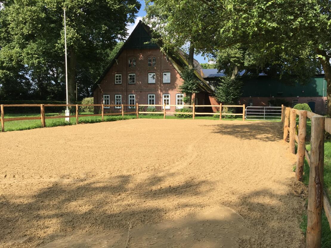 Unsere Anlage bietet vielseitige Möglichkeiten, Zeit mit Ihrem Liebling zu verbringen. Wir verfügen über eine Reithalle, ein Dressurviereck 20 x 60 m, einen Platz für sämtliche Arten der Bodenarbeit sowie einen Trailplatz für z.B. Working Equitation. Die Plätze sind drainiert, haben gepflegte Böden und Flutlicht.