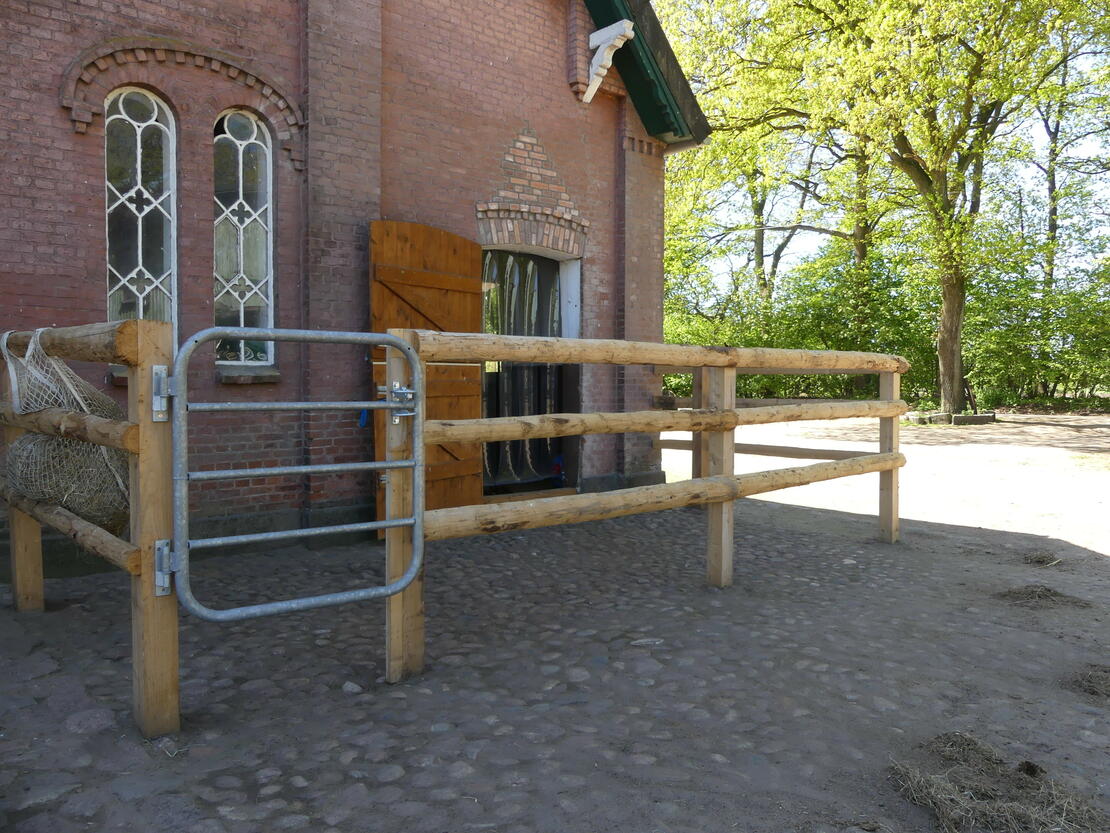 Über kleine Wirtschaftswege gelangt man in ein weitläufiges Ausreitgelände.
