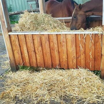 Wir sind eine nette Gruppe von Menschen, bei denen das Wohl des Freundes Pferd einen hohen Stellenwert hat. Dafür tragen wir mit unserem persönlichen Einsatz bei. Wir bieten den Pferden und Ponys, die es vertragen, ganzjährig Weidegang auf langen Koppeln mit viel Bewegung und den anderen auf der fast ein Hektar großen Paddockfläche des Aktivstalls jede Menge Abwechslung und Bewegungsanreize. Dank der neuen Technik können bei uns bis zu 30 Pferde in einer gemischten Herde auf der riesigen Paddockfläche gemeinsam spielen und leben, in dem Ruhebereich in 4 unterschiedlichen Liegehallen mit Waldboden mit ihren Freunden chillen. Zum Heu fressen gibt es 4 "Fresspaddocks" sowie einen Einzelheudosierer mit verschiedenen Futtersorten, z. B. eigene (recht trockene) Heulage für die Huster, energiereiches Heu für schwerfuttrige, energiearmes Grassamenheu für leichtfuttrige Pferde, Heu vom "Heuboy" (aus der Trocknung), Stroh usw. . Auf den Fresspaddocks stehen große Holzraufen, in denen mit und ohne Netz gefüttert wird. Zu den Fresspaddocks bekommen die Pferde individuellen Eintritt mittels eines Chips in der Mähne oder am Halsband. Auch den Zugang zur Weide ermöglicht ein Selektionstor, sodass die Pferde mit begrenztem Weidegang nur zu bestimmten Zeiten auf's Gras können, andere dagegen dauerhaft. So ist eine Weidezeit von einer Stunde täglich bis zu 24 Stunden täglich leicht umsetzbar. Für weitere Bewegungsanreize lockt ein Kraftfutterautomat mit Hafer in 25g kleinen Portionen, Mineralfutter oder haferfreiem Futter. Wer neugierig auf unser einzigartiges und neu entwickeltes Konzept geworden ist, darf sich gern melden, es gibt regelmäßig Führungen über die Anlage.