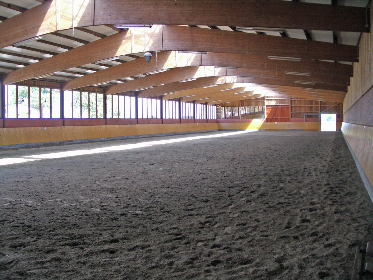 Wir pflegen die Anlage mit zahlreichen Weideflächen, Paddocks, großer Reithalle, Longierhalle, Reitwegen, Führanlage und mehreren Außenplätzen. Den täglichen Service wie misten oder raus-rein übernehmen unsere Kunden selbst. Der Hof ist gut geeignet für Profis die ihre Pferde vom Youngster bis zum Rentner selbst betreuen möchten und dazu tolle, ruhigeTrainingsbedingungen finden.