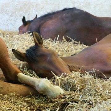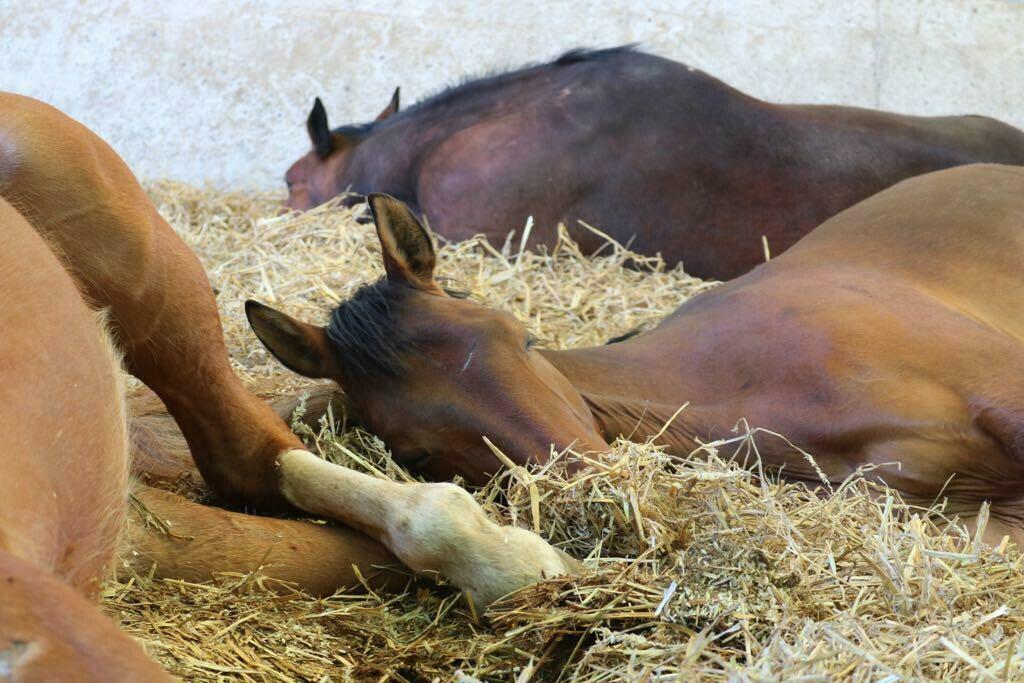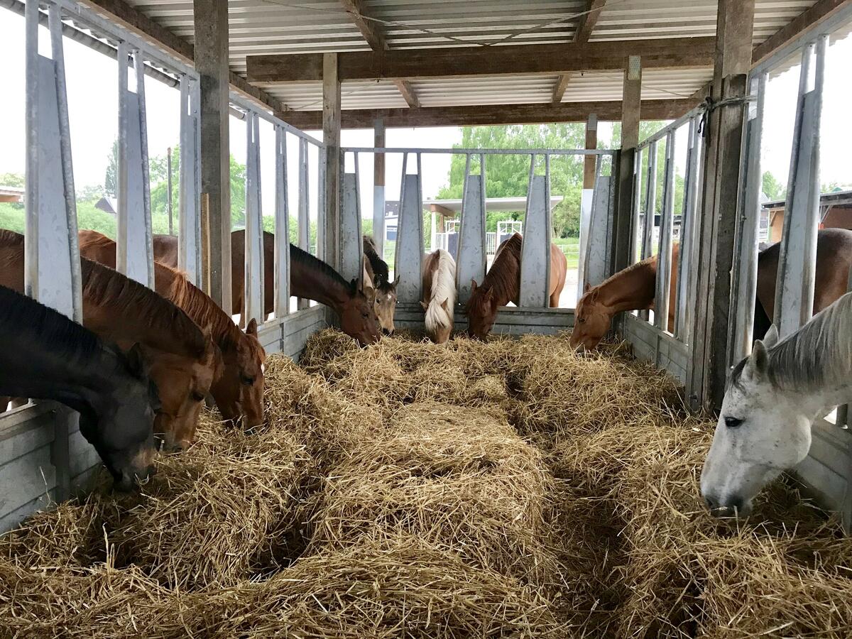 Für Pferde ist zur Gesunderhaltung ein seitliches Liegen und Schlafen unerlässlich. Um diesen Bedürfnissen nachkommen zu können, stehen bei uns 5 Liegehallen zur Verfügung (3 mit Stroh und 2 mit Leinenpellets eingestreut). Pro Pferd kommen dadurch gut 11 m2 zusammen.