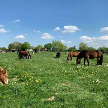 Eine gepflegte große Aktiv-Offenstallanlage mit Trail auf unterschiedlich aufgebauten Böden, mit Pferden in den Altersgruppen von - bis.
