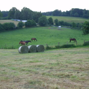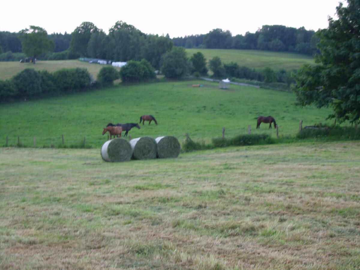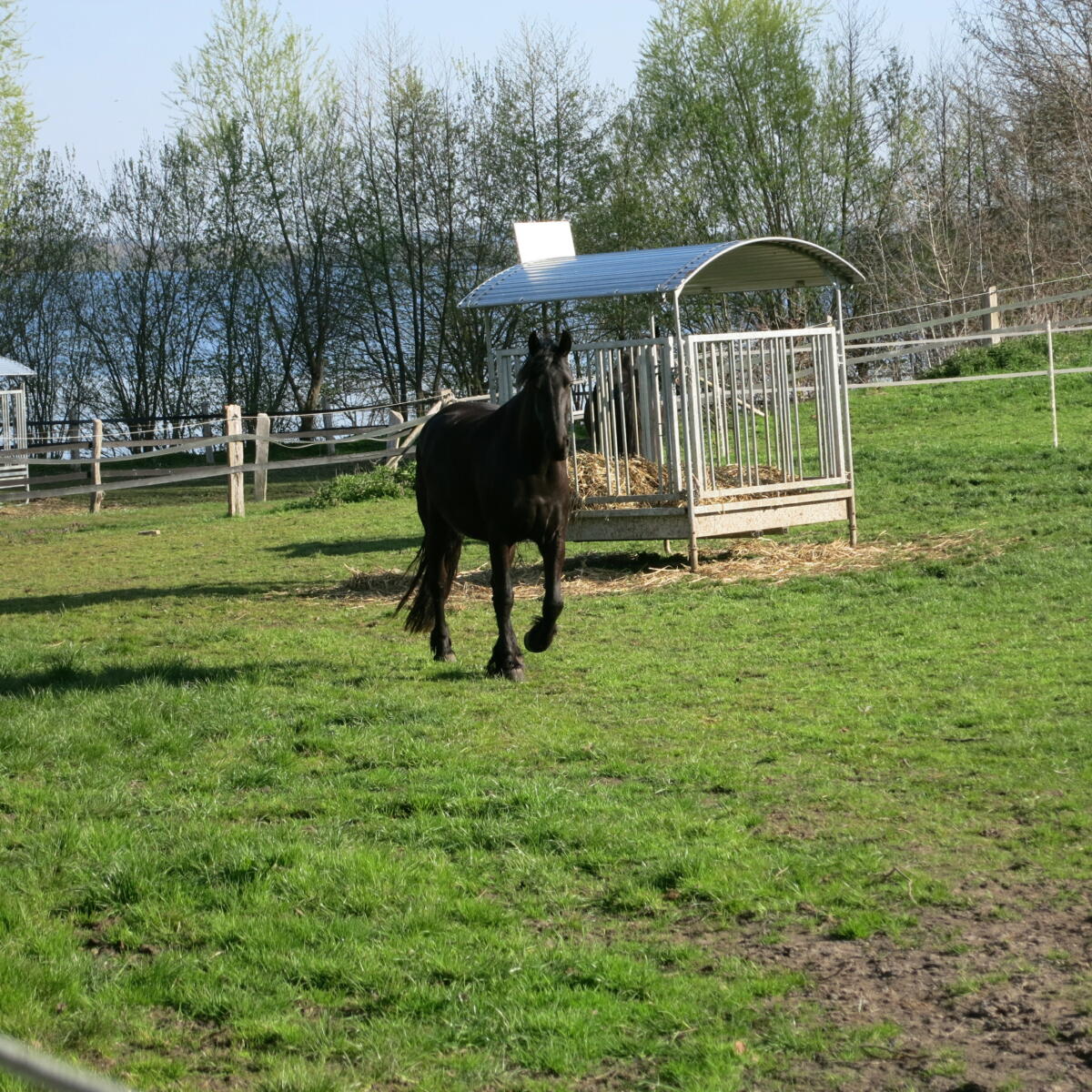Innenbox, Paddock mit Heuraufe, Füttern, täglich Misten und Einstreu
