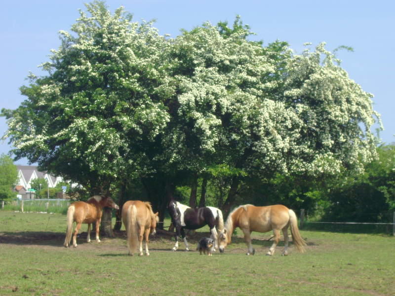 Für alte Pferde, die schlecht kauen können, gibt es eingeweichte Heucobs bis zu 12 mal am Tag aus einem Automaten. Pferde mit hohem Futterbedarf können durch ein Zugangstor in einen Bereich mit Heulage zur freien Verfügung. Für leichtfuttrige Pferde wird die passende Futtermenge durch einen Futterautomaten so verteilt, dass keine langen Fresspausen entstehen. Heu statt Heulage ist in einem seperatem Fressbereich möglich. . Für den Winter gibt es einen ca. 1000 Quadratmeter großen, abwechslungsreich gestalteten Auslauf mit 2 Offenställen. Die Ställe sind mit dick gepolsterten Gummimatten ausgelegt. Im Winter wird mit Rapsstreu übergestreut. Durch die sehr staubarme Haltung und Fütterung ist unser Stall auch sehr gut für Pferde mit Lungenproblemen geeignet. Rund um den Stall gibt es ein sehr schönes Ausreitgelände. Von Oktober bis April kann auch am 5 Minuten entfernten Strand geritten werden.Für die abwechslungsreiche Arbeit mit dem Pferd steht eine Reithalle (30x15m) ein Reitplatz (25x50) ein Longierzirkel, ein kleiner Trailplatz und ein Kletterberg zur Verfügung. Natürlich können Sie auch mit dem eigenen Pferd an Unterricht, Tagesritten, mehrtägigen Wanderritten und Kursen teilnehmen. Als günstige Alternative gibt es noch einen kleinen Offenstall (180 € im Monat)