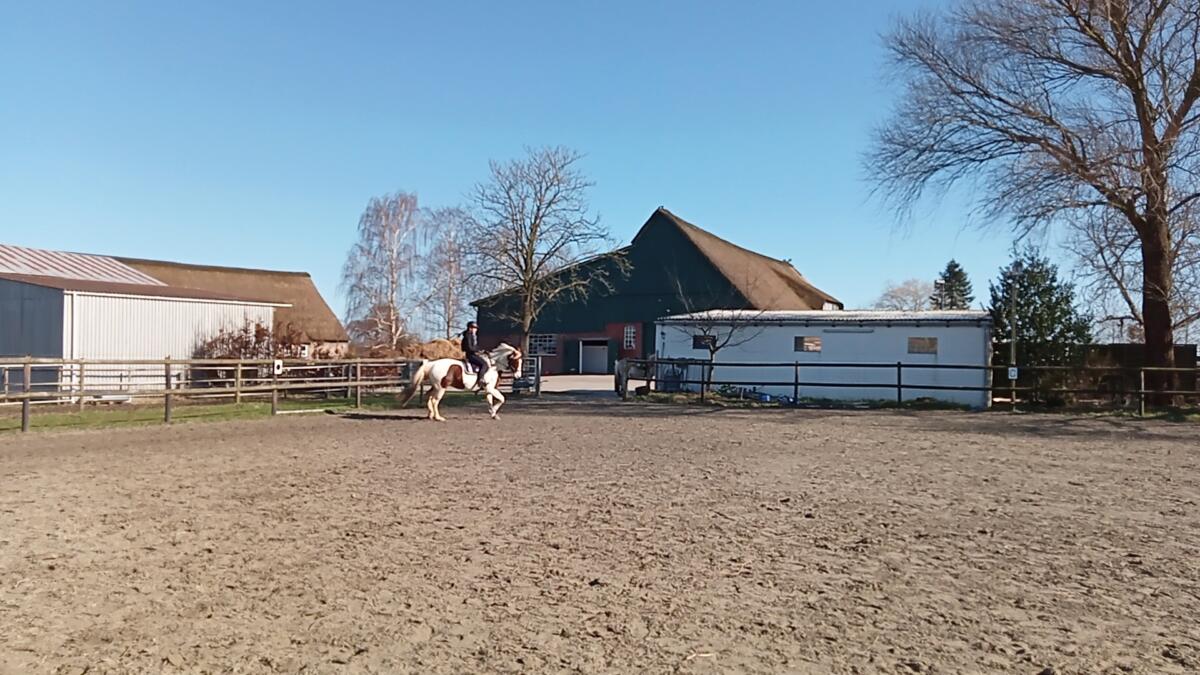 Paddockboxen, Fenster sowie Ponyboxen und Innenboxen, mit beleuchtetem Allwetter Wattreitplatz( ganzjährig beteitbar) Solekammer, Longierzirkel/ Bodenarbeitsplatz , matschfreie Sandpaddocks, Waschbox innen,und Waschplatz draußen,beheizter Sattelkammer, Schränkekammer, Futterkammer, Reiterstündchen , WC, große Weiden und Solarium. Wir sind stets dabei, unser kleines Paradies noch schöner zu gestalten🦄