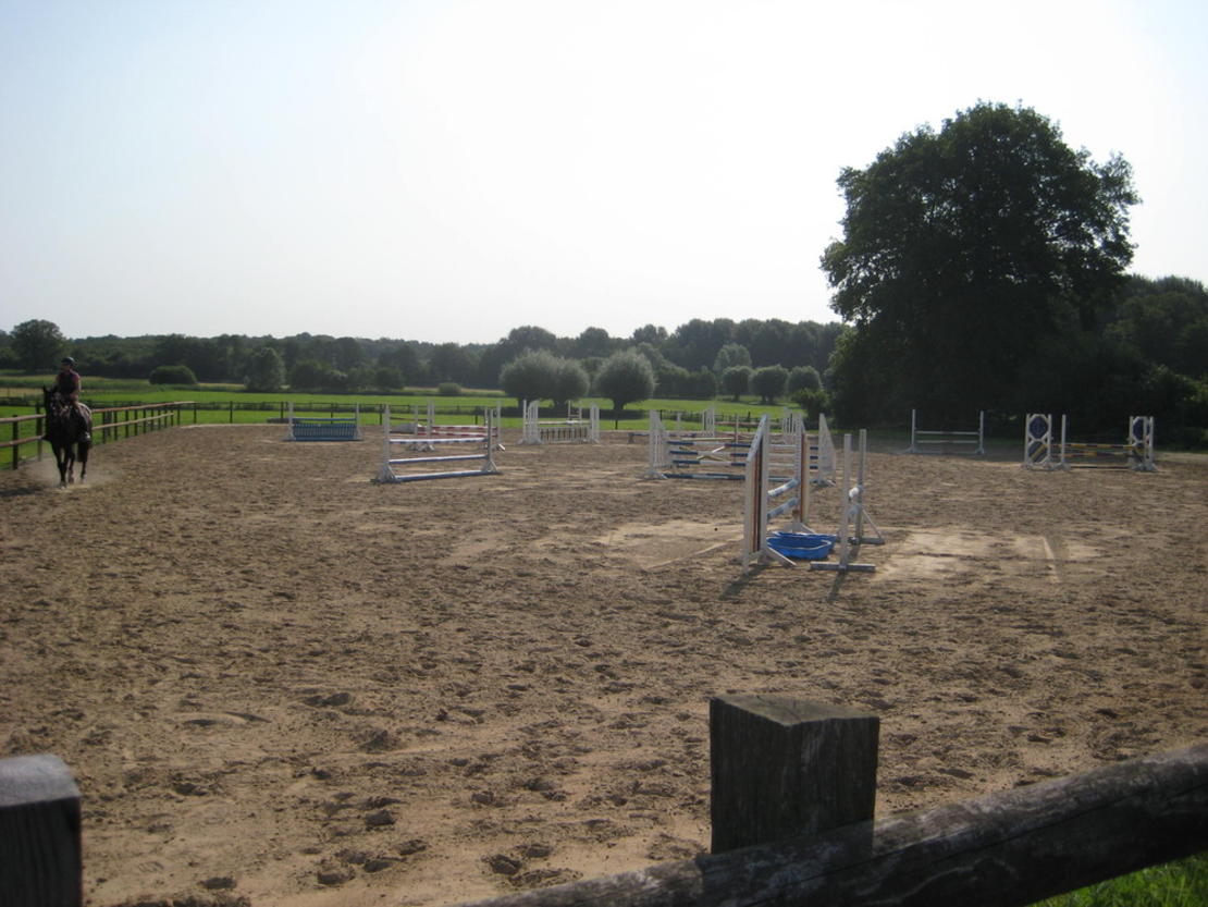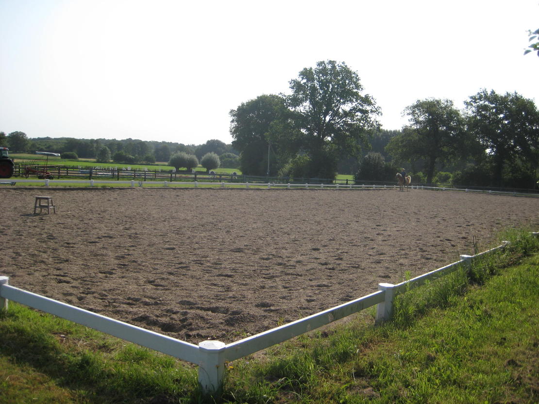 Der familiär geführte Stall hat 43 Boxen, liegt 5 km von Bargteheide entfernt und ist verkehrsgünstig über die A21 zu erreichen. Jeder Stalltrakt verfügt über einen seitlich offenen Lichtfirst , dazu hat fast jede Box ein Fenster. Die Pferde gehen in getrennten Gruppen (Wallache/Stuten/Pony's) ganzjährig auf Sommer-/Winterweide. Tägliches Misten (außer So.) sowie großzügiger Einstreu inkl. 3 Fütterungen mit Kraftfutter bzw 2x.Raufutter aus z.T. eigenem Anbau, sowie die individuelle Betreuung ihres Pferdes ist uns wichtig. Es wird qualifizierter Dressur- und Springunterricht angeboten. Unsere Anlage besteht aus einer überdachten Longierhalle 18 m, 20x40m Reithalle, 20x60m Außenviereck und einem 45x70m großen Sand-Springplatz. Das rundum Wohlfühlpaket für Pferd und Reiter.
