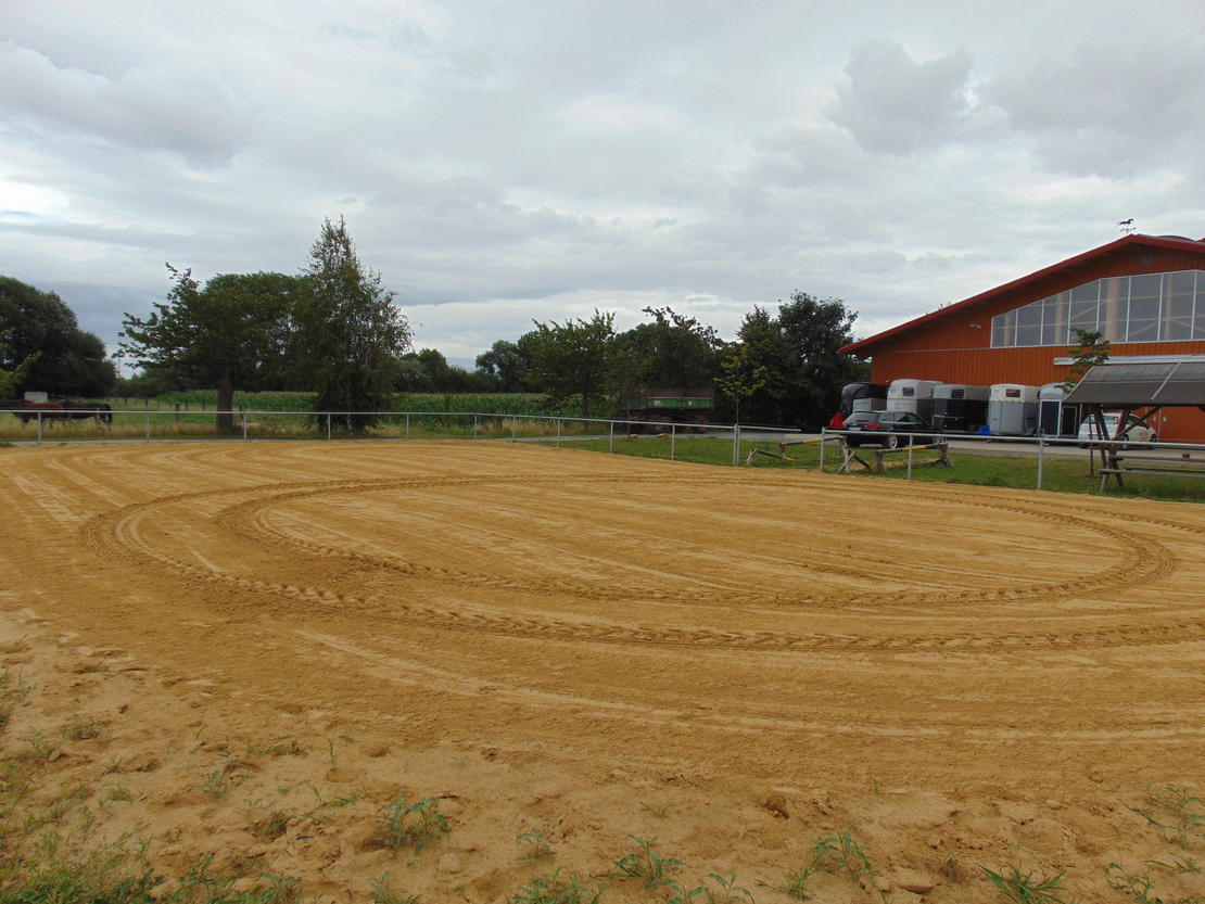 Die Reitfläche ist 20 x 40m groß und ist mit einer autom. Beregnung ausgestattet. Für den Sommer steht außerdem ein Außenreitplatz 60x25 zur Verfügung. Geräumige Sattelkammer mit viel Ablagemöglichkeit für Decken & Co.